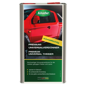 KLUTHE PREMIUM-UNIVERSALVERDÜNNER ist ein hochwertiger, schnell flüchtiger Verdünner, mit dem fast alle bekannten Lacke verdünnt werden können. Die Zusammenstellung der Lösemittel ist so ausgewählt,